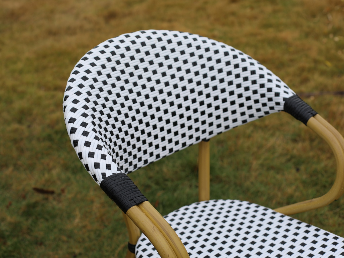 Плетение выполнено вручную из плоского искусственного ротанга 12х1,3 мм. Цвет оплетки - черно-белый.