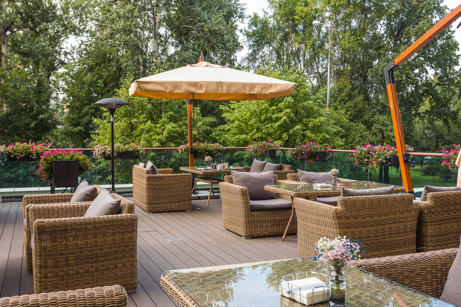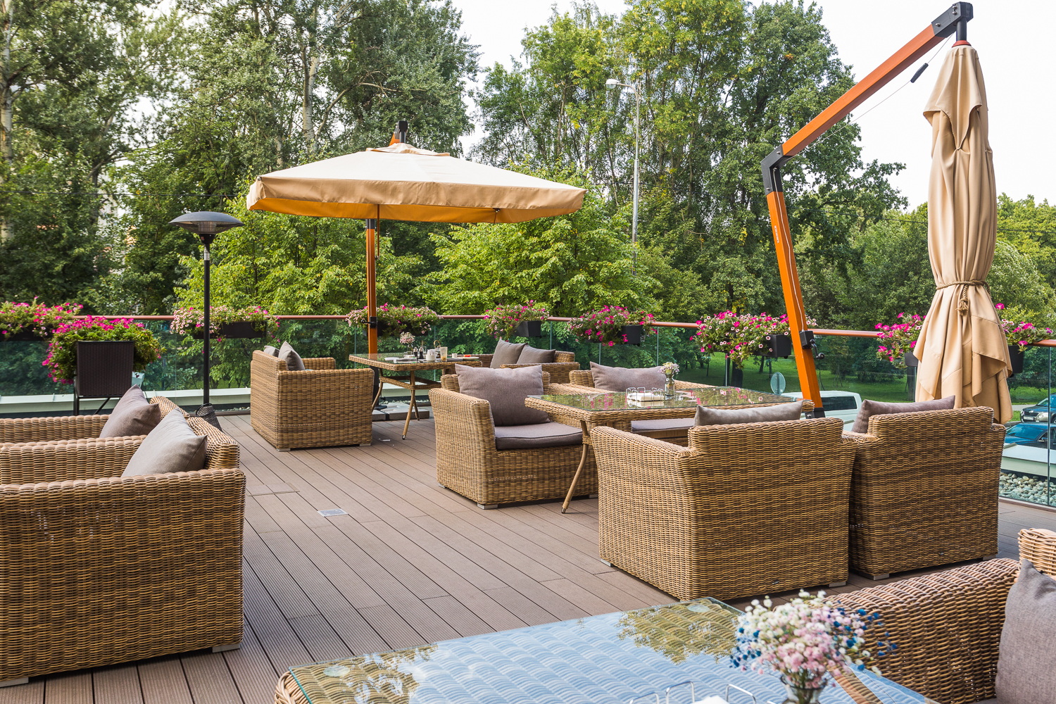 Ее отличает алюминиевый каркас высокой прочности. В качестве декоративной составляющей выступает ручное плетение на основе круглого искусственного ротанга. Оно выполнено в соломенном оттенке.