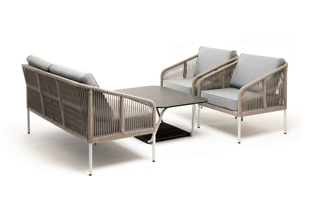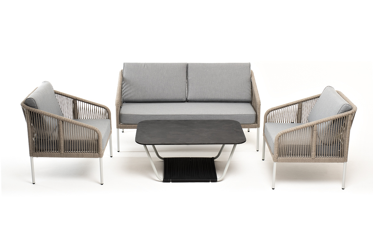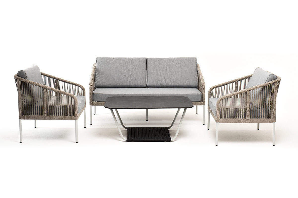 "Канны" лаунж-зона 4-местная из роупа со столом "Глория" (серый гранит), каркас алюминиевый светло-серый, роуп серый меланж