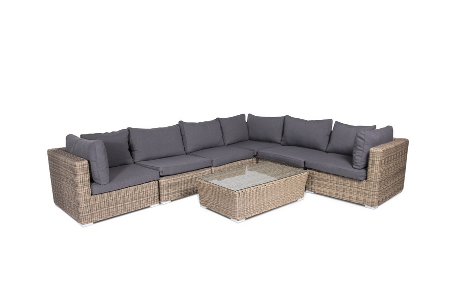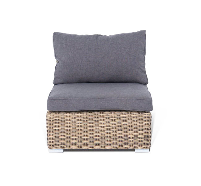 Прямой модуль «Лунго», выполненный из круглого искусственного ротанга натурального соломенного оттенка, позволяет использовать не только как самостоятельный элемент, но и быть частью лаунж-зоны, в которую данная модель превосходно интегрируется.