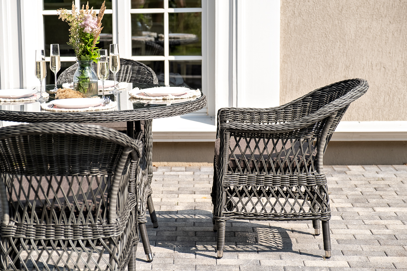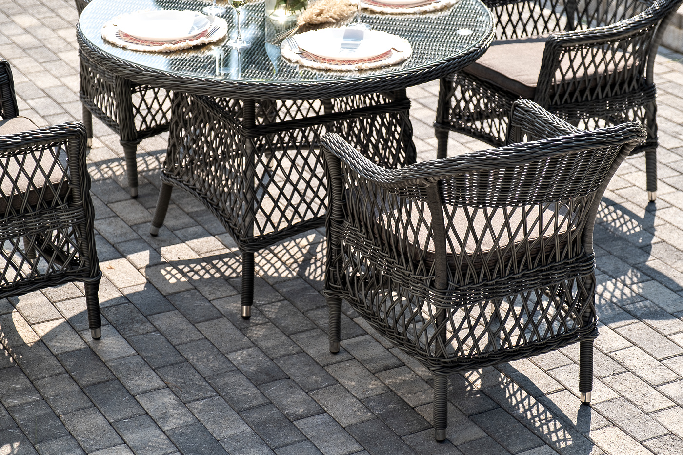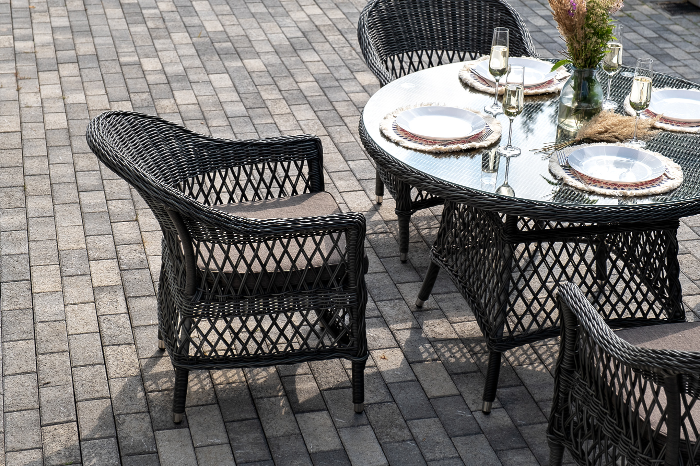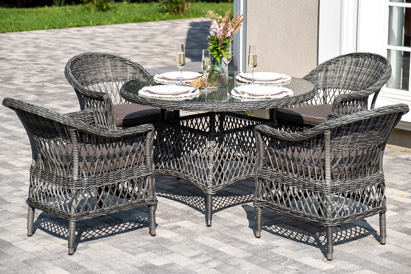 "Дольче" обеденная группа из искусственного ротанга, цвет графит