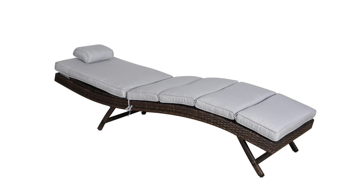 В комплекте прилагается матрас светло-серого цвета из водостойкой ткани. Мебель натуральных расцветок гармонично вписывается на пляже, в саду, на террасе.
