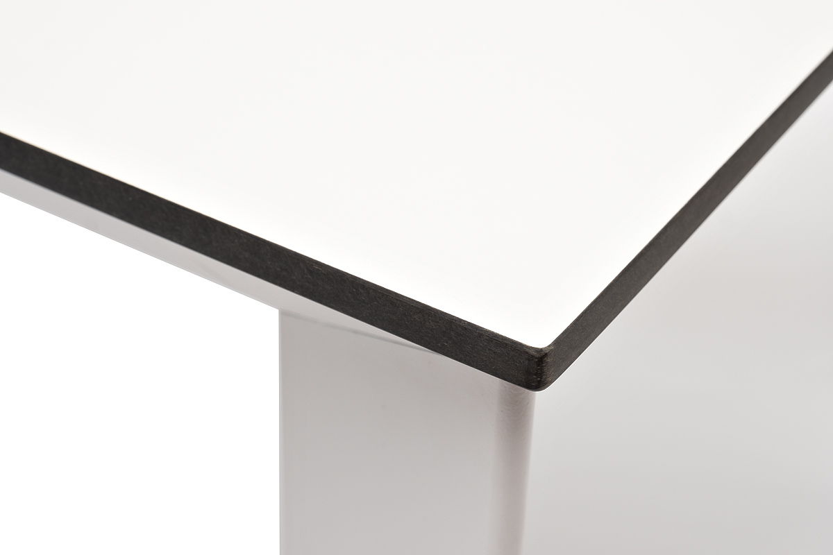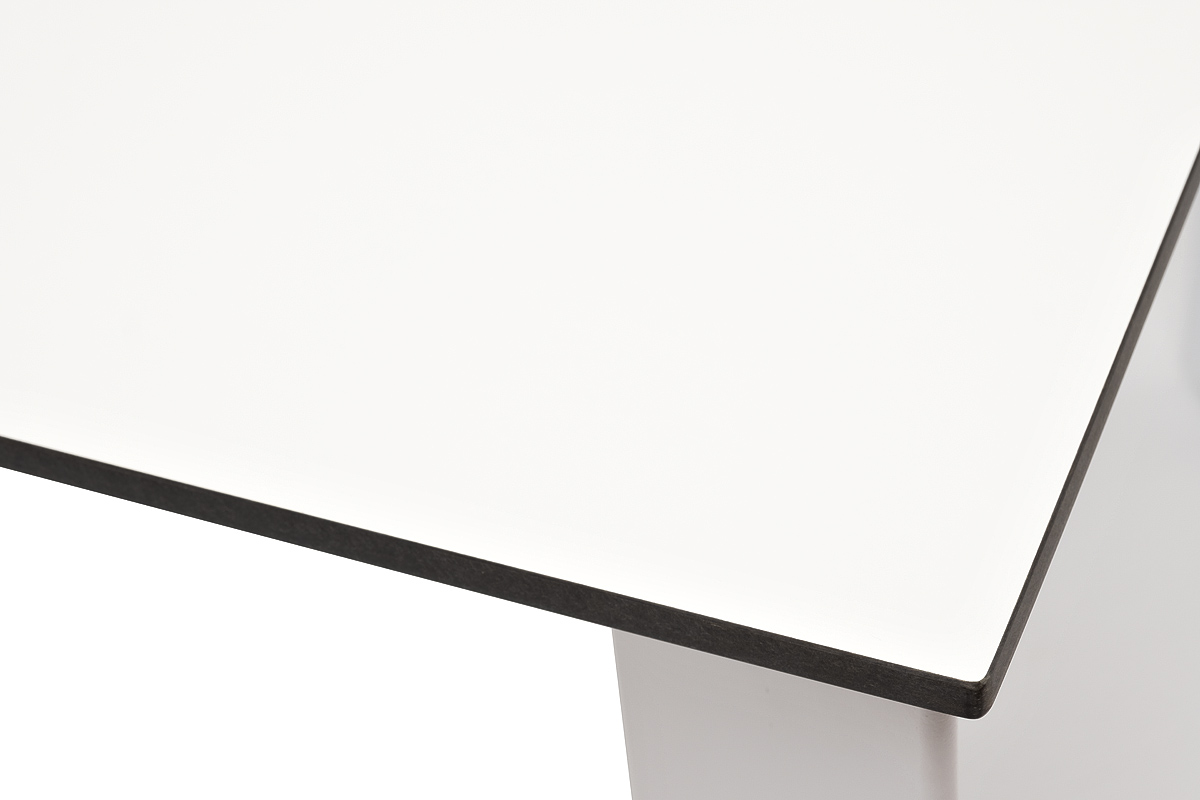 Столешница выполнена из современного высококачественного монолитного компакт-пластик HPL, толщиной 12 мм в цвете молочный. Материал устойчив к высоким температурам, попаданию влаги и может использоваться как в помещении, так и на открытом пространстве. Подстолье изготовлено из крашеного алюминия белого цвета.